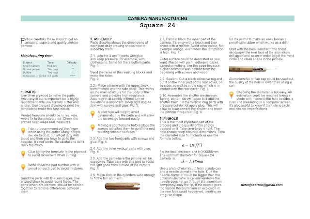 Some years ago I was proud to say my pinhole camera reached better results than cheap digital cameras. But my dear old pinhole used paper, its size was not small and people looked at me in a strange way when saw the box. Today I offer a compact design for a film camera which allows you to take photos even hold free on sunny days.