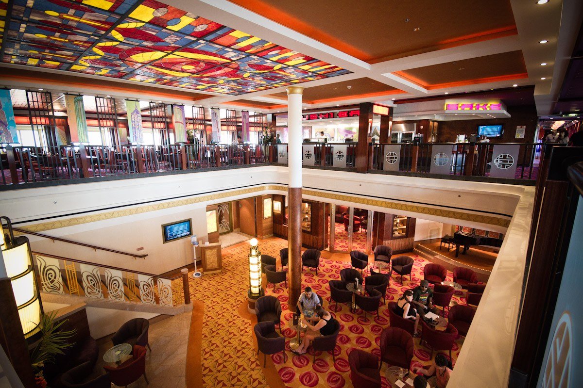 Siempre quise hacer un crucero, aunque estar rodeado de miles personas normales no parecía buena idea. Suele ser gente de clase media que juega a ser rica por unos días; les divierte estar en un ambiente de lujo, con asistentes y esas cosas. Por el contrario, me fascinaban los grandes barcos, unas auténticas ciudades flotantes que ni siquiera se pueden calificar como mastodónticos exceden en mucho al adjetivo. Éste, el Norwegian Jade, con 15 plantas y 300m deja pequeño al Titanic. En sus tripas hay piscinas, innumerables restaurantes, casino, teatro, tiendas, discotecas y una biblioteca que siempre estaba vacía. Los jacuzzis siempre llenos. Comida gratis las 24 horas, hasta con servicio de habitaciones. ¡Incluso una máquina de helados disponible siempre! Me sorprendió lo impecable que estaba todo, pues no había ni un rasguño en las escaleras o las moquetas, a pesar del uso continuado que se les daba. En el fondo es un lujo al estilo americano, es decir, sólo de fachada como en que se ve en Las Vegas pero sin demasiada esencia.