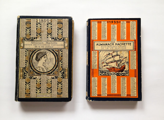 Marches aux puces in Paris bring always surprises. Last time I found a collection of almanacs with the tittle Almanach Hachette. Two seconds after having one of them in my hands I knew it was the book of the year. What an amazing discovery! They are not only almanac but also a encyclopedia and a useful guide for life. I bought two (1899 and 1935).